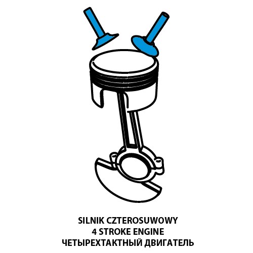 Osiąga 3000 obrotów na minutę, posiada pojemność skokową 196 cm3, LwA=95 dB.