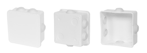 Puszka natynkowa wykonana z materiału termoplastycznego, do montażu natynkowego, zatrzaskowa.