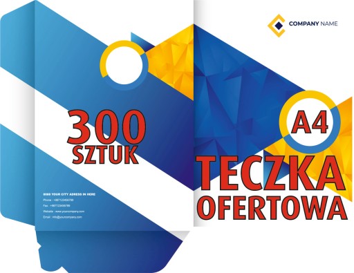 ✔️ nadruk FULL COLOR (paleta CMYK) jednostronny (na stronach zewnętrznych teczki + skrzydełka)