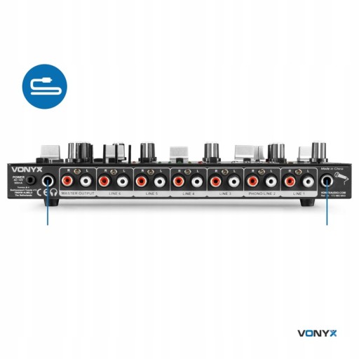 Umieść swoją ulubioną muzykę w formacie MP3 na pamięci USB i odtwarzaj ją bez wysiłku za pomocą miksera. Możliwe jest również bezprzewodowe podłączenie smartfonu lub tabletu do miksera przez Bluetooth, dzięki czemu można łatwo (bezprzewodowo!) odtwarzać muzykę za pomocą miksera. Możliwe jest podłączenie kolejnych 6 źródeł dźwięku (odtwarzacz CD, kontroler midi, laptop itp.) do Vonyx DJ. Mikser ma również wejście Phono, dzięki czemu możliwe jest nawet podłączenie gramofonu. Tyle opcji połączeń i to w bardzo kompaktowej obudowie!