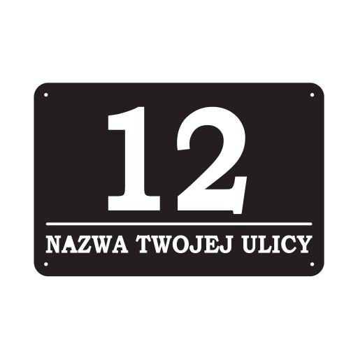 Tabliczka z numerem na dom i nazwą ulicy wykonywana jest na zamówienie. Wycinana jest laserowo ze stali nierdzewnej o grubości 2 mm, następnie malowana proszkowo na czarny kolor z delikatną strukturą, co nadaje wyrobowi elegancji. Sposób malowania dodatkowo zabezpiecza materiał przed działaniem czynników zewnętrznych.