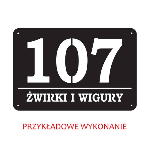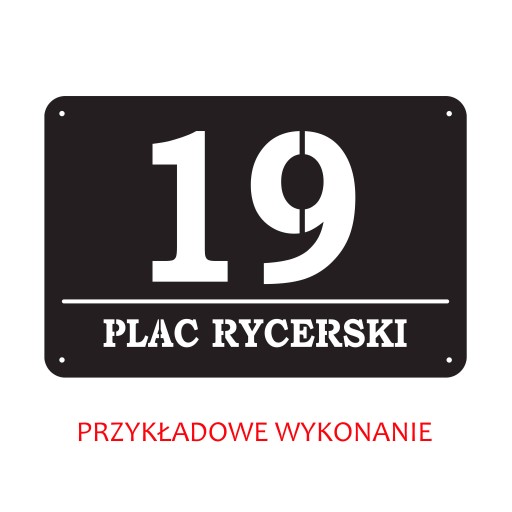 Do tabliczki dołączamy 4 czarne zaślepki na otwory, aby móc zasłonić śruby montażowe. Śruby i kołki nie są dołączone do zestawu ze względu na dużą różnorodność podłoży (ścian budynków).