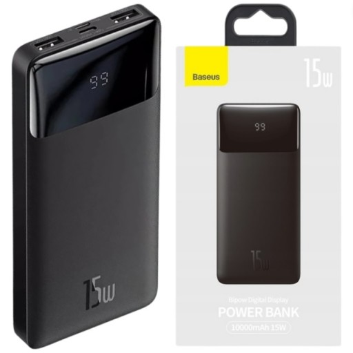 BASEUS POWER BANK 10000MAH 15W USB USB-C TYPE-C PD 3A Z WYŚWIETLACZEM LED