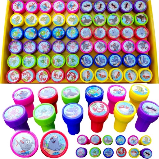 Opakowanie zawiera wzory zwierzątek morskich na pieczątkach takich jak żółw morski, konik morski, ryba, krab, rozdymka, wieloryb, foka, małża, ośmiornica.. Łącznie na tej aukcji kupujesz zestaw aż 60 sztuk nkolorowych pieczątek.