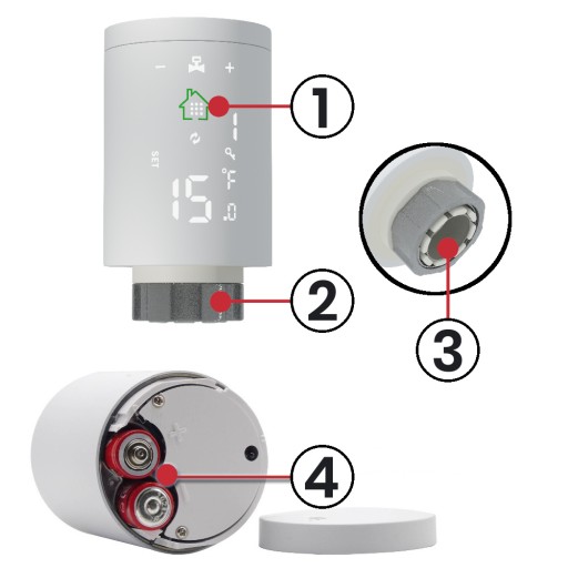 - Tryb BOOST - chwilowe, pełne otwarcie zaworu, mające na celu rozgrzanie kaloryfera w najkrótszym możliwym czasie