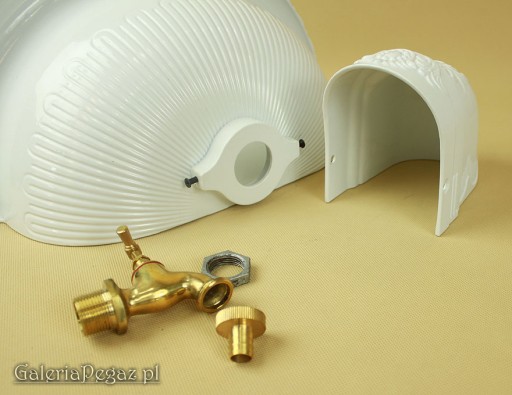 W zestawie ze zlewem mosiężny kran o gwincie przyłącza 3/4 cal służący do wkręcenia we wcześniej przygotowane przyłącze oraz korek do odpływu.