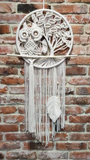 MAKRAMA SOWA DRZEWO KOŁO BOHO DEKORACJA ŚCIANĘ RĘKODZIEŁO SZNUREK PREZENT