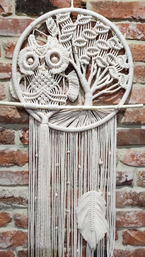 ✅Przepiękne dzieło sztuki stworzone jest z ciasno splecionych sznurków, które tworzą motyw sowy oraz drzewa.