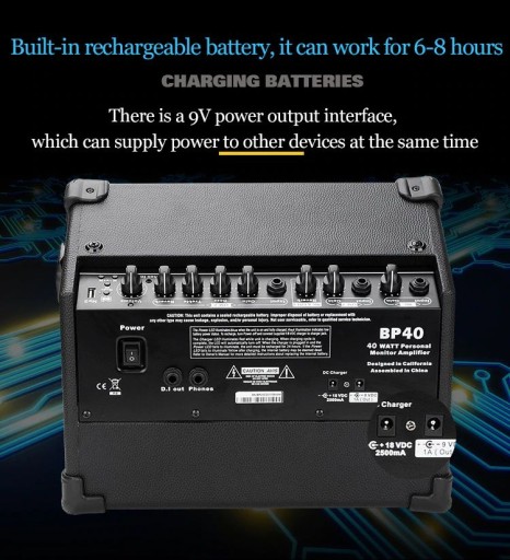 Wydajna bateria: Przenośny wzmacniacz do gitary akustycznej jest niezastąpiony w podróży. Zawiera wszystko, czego potrzebujesz do występów i prób w dowolnym miejscu. Działa przez 6-8 godzin po 5 godzinach ładowania, w zależności od głośności gry. Koncertujący gracze pokochają czerwone diody LED, które ostrzegają Cię przed wyładowaniem wzmacniacza.