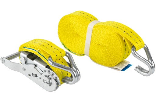 Wytrzymały poliestrowy pas transportowy z napinaczem. Dwuczęściowy pas transportowy o długości 4 m, szerokości taśmy 35 mm i maksymalnej nośności 2 ton. Wygodna i mocna klamra z napinaczem.