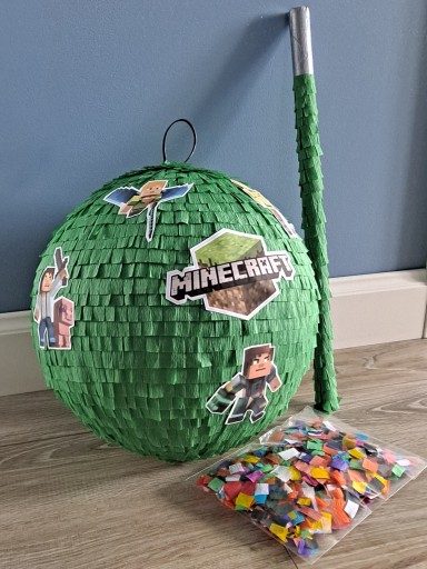 1) PINIATA W KOLORZE ZIELONYM Z BOHATERAMI MINECRAFT