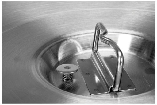 który ułatwia otwarcie i eliminuje problem zasysania pokrywki przy przewożeniu gorących produktów. Wyrównanie ciśnienia uzyskujemy po naciśnięciu zaworu.