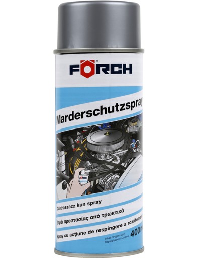 FORCH odstraszacz kun to wysokiej jakości przezroczysty preparat w sprayu, zabezpieczający przed uszkodzeniami spowodowanymi przez ugryzienia kun na kablach i przewodach. Ze względu na klejącą powłokę ochronną kuny unikają pokrytego nią podłoża.