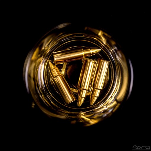 dwie solidne szklanki do whisky, godne tego trunku matowa, czarna piersiówka o pojemności 300 ml, w której przeniesiesz zarówno whisky, jak i wódkę, absynt czy rum dwie szklane podkładki pod szklanki, z motywem dziur po kulach cztery pociski chłodzące, które – po wyjęciu z zamrażalnika – pomogą utrzymać niską temperaturę trunku nie zmieniając jego smaku; szczypce do lodu lub metalowych pocisków chłodzących, dzięki którym wygodnie włożysz je lub wyjmiesz ze szklanki.