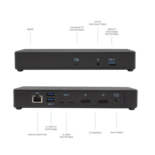 Technologia Thunderbolt 3 drugiej generacji oznacza, że stacja dokująca jest kompatybilna zarówno z Thunderbolt 3 jak i USB-C, co czyni ją elastyczną i wszechstronną opcją dla firm z mieszanymi zasobami notebooków lub tabletów Thunderbolt 3 i USB-C.