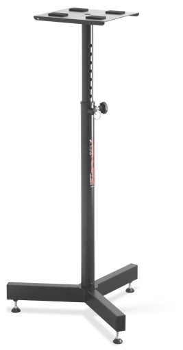 Profesjonalny statyw pod monitory studyjne z pełną regulacją wysokości. Statyw wyposażony w regulowane gumowe nóżki i kolce co ułatwia dopasowanie statywu do typu podłoża