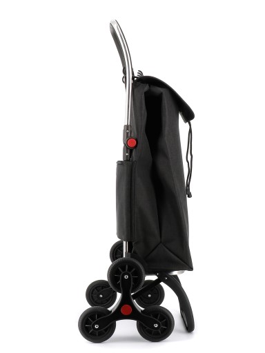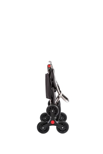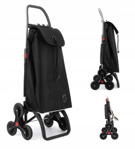 Aluminiowy wózek sklepowy z 6 kółkami które są pomocne podczas wchodzenia z nim po schodach. Wytrzymały stelaż z aluminium który jest składany jeszcze w połowie po złożeniu zajmuje niewiele miejsca. Pojemna torba jest zamykana na sznurek i przykrywana klapą, dwie kieszenie wewnętrzne i tylna kieszeń zapinana na suwak. Złożony wózek można wziąć do ręki ponieważ umożliwia to specjalny uchwyt który pełni także funkcję wieszaka na wózek sklepowy. To idealny model do wchodzenia po schodach, wózek ten posiada 6 ruchomych kółek (po 3 z każdej ze stron) dostosowujących się do podłoża, dzięki czemu wózek praktycznie sam wjeżdża po schodach! Jest bardzo stabilny, lekko się prowadzi, dlatego już dziś poczujecie wielką ulgę, gdyż codzienne zakupy przestaną być już dla Państwa problemem! wielokrotnie nagradzanego na licznych wystawach i targach międzynarodowych za jakość i innowacyjność produktów