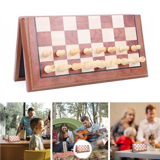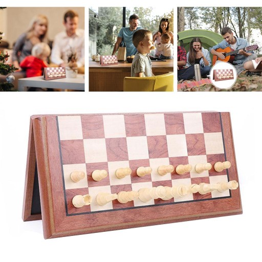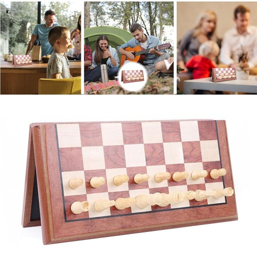 Stół szachowy z wyraźnym wzorem na powierzchni, składany drewnianą deską, kiedy tylko chcesz, wygodny do użytku w pomieszczeniach i na zewnątrz.