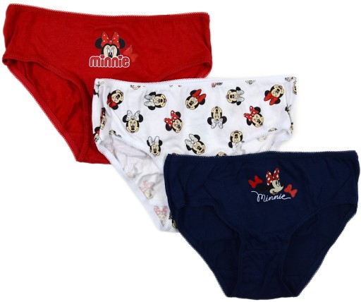 Śliczny zestaw 3 sztuk bawełnianych majteczek dla dziewczynki. Majtki na licencji z bohaterem bajki DISNEY - Myszka Minnie. Oferowane produkty są dobrej jakości. Aby jak najdłużej zachowały swoje kolory i aplikacje należy prać je ręcznie.