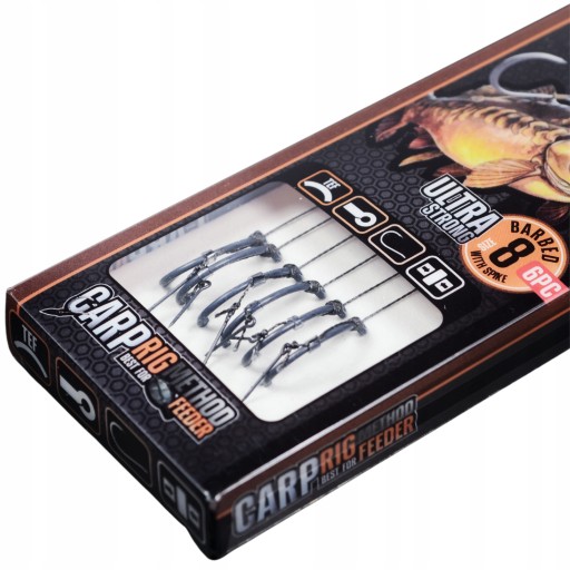 Zestaw przyponów z igłą. Przypony idealnie nadają się do metod feederowych oraz karpiowych. Wytrzymały hak z przyponem z plecionki. Igła z zadziorem zapobiega spadaniu kulek proteinowych, ziaren, pelletu.