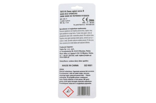 - Długość zimnych ogni: 17,5 cm