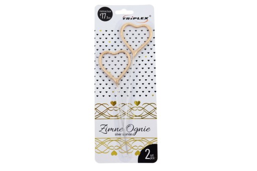 Zestaw znanych i popularnych zimnych ogni w kształcie serca firmy TRIPLEX o długości 17,5cm. W opakowaniu znajdują się 2 sztuki