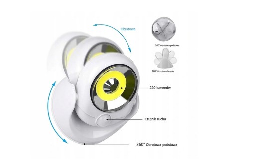 LAMPKA LED COB 360 NA BATERIE Z CZUJNIKIEM RUCHU