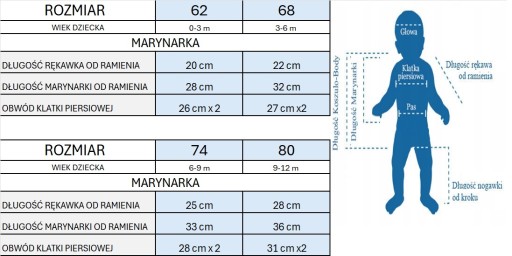 ROZMIAR UBRANEK Z TABELI PROPONUJEMY PORÓWNAĆ Z AKTUALNIE PASUJĄCYMI UBRANKAMI