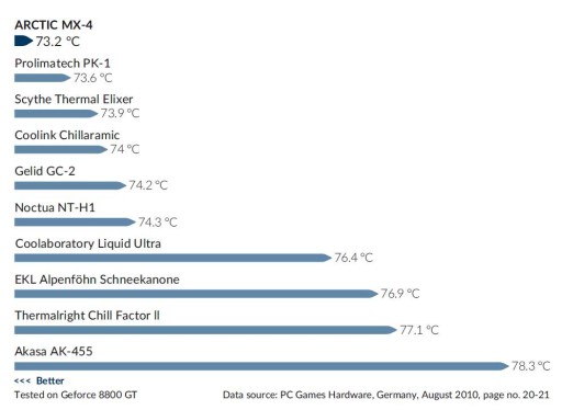 Pod względem trwałości MX-4 jest bezkompromisowa - w przeciwieństwie do pasty metalowej czy silikonowej. Przy prawidłowym zastosowaniu zachowuje trwałość nawet do ośmiu lat.