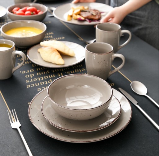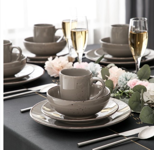 Serwis zastawa kamionkowa VANCASSO NAVIA szara na prezent 48szt/ 12 osób