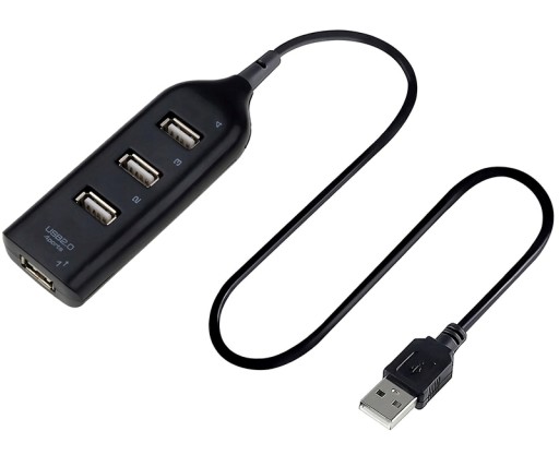 Hub USB 2.0 4 porty to wysoce wydajny 4-portowy rozdzielacz USB podłączany do komputera w celu zwiększenia ilości portów USB.