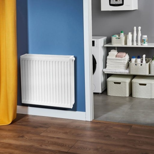Grzejnik dwupłytowy z dwoma radiatorami, przyłącze boczne obustronne