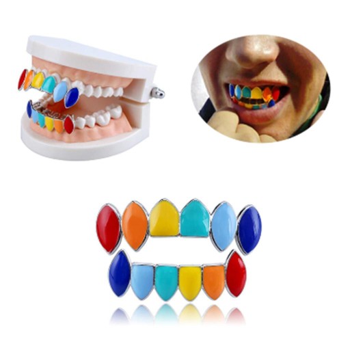 Kolorowe grille hip-hopowe z górnym i dolnym zębem, do osobistego noszenia lub prezentu dla przyjaciół.