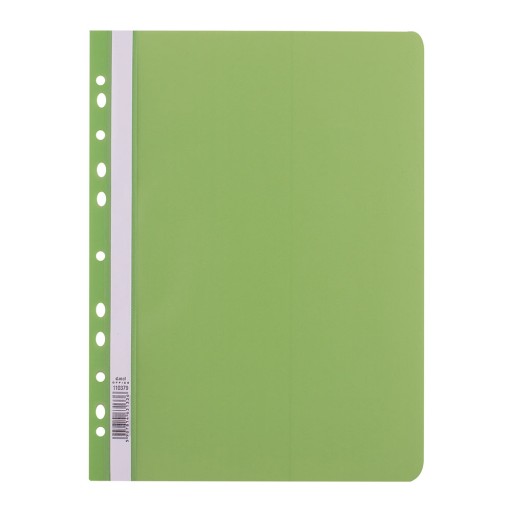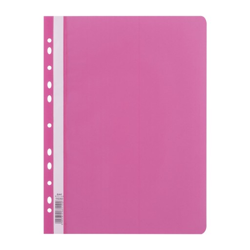 Skoroszyt to podstawowe wyposażenie każdego pracownika biurowego, bez którego trudno wyobrazić sobie sprawne przechowywanie podręcznych dokumentów. Skoroszyt biurowy pomaga porządkować i segregować dokumenty w miejscu pracy, doskonale chroniąc je przez zniszczeniem i zabrudzeniem. Szeroka kolorystyka umożliwia łatwą segregację dokumentów i szybką identyfikację zawartości. Wykonany z mocnego tworzywa PP. Dzięki bocznej perforacji, skoroszyt posiada możliwość wpięcia do dowolnego segregatora. Wyposażony w funkcjonalny pasek do opisu zawartości. Przeźroczysta przednia okładka umożliwia szybką identyfikację dokumentów. Wyposażony w zaokrąglone narożniki oraz mocne metalowe spinki.
