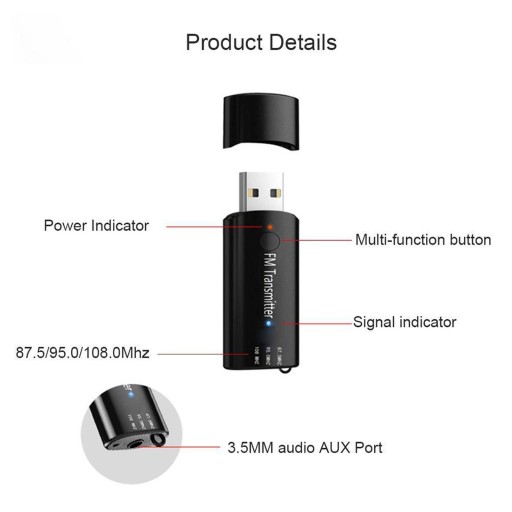 Z wbudowaną anteną, 3,5-milimetrowym odbiornikiem aux bluetooth i telewizorem może osiągnąć zasięg do 15 m, gdy nie ma przeszkód. Możesz także używać go w samochodzie bez Bluetooth, podłącz urządzenie do portu USB, aby zasilić i kabel 3,5 mm do wejścia audio, podłącz go do smartfona, aby cieszyć się muzyką w telefonie. Mały rozmiar i poręczność.