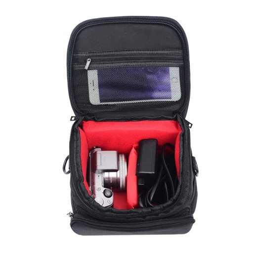 Dzięki wyjmowanej przegrodzie główną komorę można dowolnie regulować (przestrzeń może być podzielona na 1 lub 2 części). Kieszenie doskonale nadają się do przenoszenia podstawowych akcesorii, takich jak: ładowarka, dodatkowe baterie, filtry, karty pamięci itp.