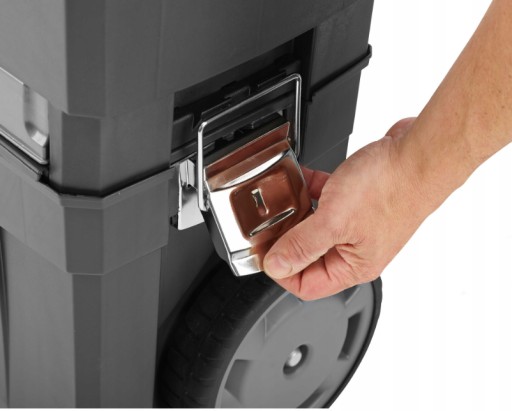 - Posiada metalowe zaczepy zarówno górnej skrzynki jak i zaczepy łączące moduły skrzyni.