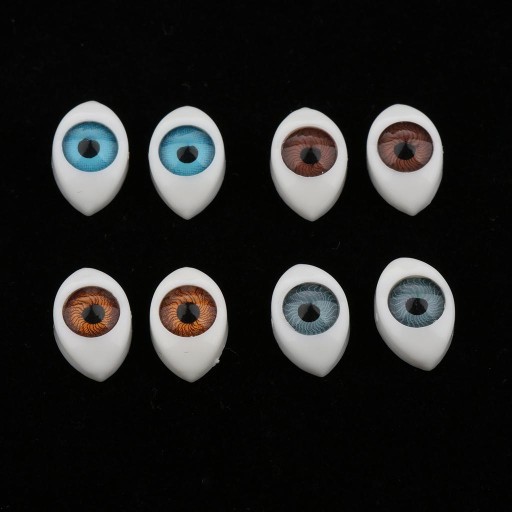 Cztery pary oczu dla lalek lub. Dostępne w czterech kolorach: szarym, brązowym, niebieskim i zielonym, z każdym kolorem po parze. Te oczy są świetnej roboty i są bardzo. Oczy lalki mają owalny kształt, są płaskie i puste w tylnej części. Są świetnym dodatkiem do majsterkowania.