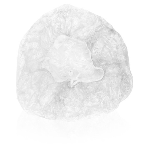 Foliowy czepek chroni włosy przed zmoczeniem podczas kąpieli.