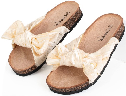 7216 БЕЖЕВЫЕ ПРОБКОВЫЕ ТАПОЧКИ С ПРОФИЛЬНЫМ БАНТОМ 38