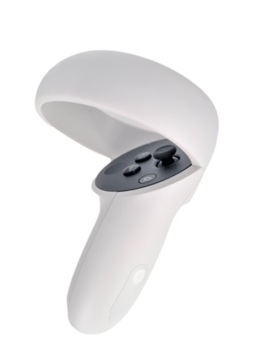 Kontrolery dotykowe Quest 2 zostały ulepszone w celu poprawy ergonomii. Nowa podpórka pod kciuk zapewnia lepszą stabilność, a lepiej rozmieszczone przyciski dają więcej swobody.