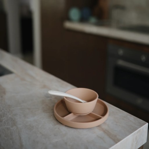 Miseczki, dostępne są w pięknych naturalnych kolorach, do których możesz łatwo dopasować śliniak Mushie, jak i pozostałe elementy zastawy stołowej.