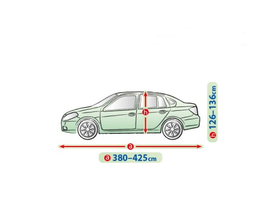 Wyznacznikiem jest zdjęcie, przedstawiające kształt samochodu, na który pasuje pokrowiec - należy porównać kształt swojego samochodu ze zdjęciem produktu. Obwód samochodu nie może przekraczać podanego w opisie wymiaru plandeki- musi być nieco mniejszy lub równy.