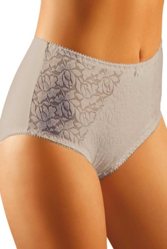 Wygodne i komfortowe majtki, wykonane z miękkiej dzianiny bawełnianej (94%) i elastynu (6%), z przodu ozdobione szeroką koronką o motywie kwiatowym na biodrach, od wewnętrznej strony środkiem podszyte bawełnianą wstawką - opinającą tkaniną, która pełni funkcję podtrzymującą – są absolutnym hitem naszej kolekcji. Koronka sprawia, że bielizna dodaje kobiecie niesamowitego uroku i seksapilu. Fason mocniej zabudowany sięgający do pępka, idealnie dopasowuje się do każdej sylwetki, doskonale się prezentując. Na środku u góry znajduje się naszyta, zmysłowa, mała kokardka, nadająca desu dodatkowego uroku. Figi te są eleganckie, ale równocześnie klasyczne – pasują do różnych osobowości. Rozmiary: M-XXXL, kolory: biały, czarny, beż.