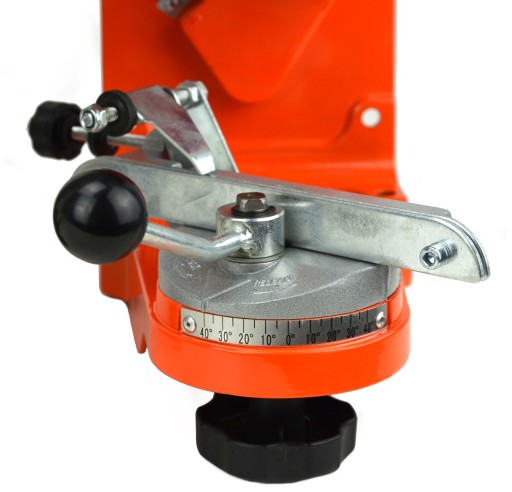 Ostrzałka wyposażona została w uchylane i obracane imadło z regulacją kąta ostrzenia (kąt obrotu 40st), oraz ogranicznik głębokości szlifowania, które umożliwiają naostrzenie łańcucha w bardzo precyzyjny sposób.