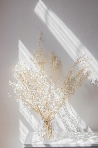Suszony, preparowany w glicerynie RUSKUS w wykończeniu bielonym. Jest trwały, dzięki czemu może latami służyć jako autentyczna dekoracja wnętrza. To produkt naturalny, więc każda sztuka może różnić się wielkością. Pasuje do innych suszonych kwiatów, z którymi można skomponować ciekawy bukiet, ale dobrze sprawdzi się jako pojedyncza dekoracja w wazonie.