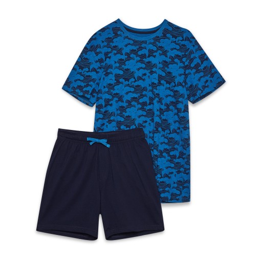 Henderson Aid to piżama męska wykonana z wysokogatunkowej bawełny 100%, która gwarantuje jakość i swobodę użytkowania, a także wygodę podczas snu. Wykorzystana bawełna jest miękką i elastyczną tkaniną, która zapewnia komfort nawet przy długotrwałym użytkowaniu, nie ogranicza ruchów oraz nie uciska ciała. Komplet składa się z niebieskiej koszulki z ciekawym nadrukiem oraz granatowych spodenek ze sznurkiem w pasie.