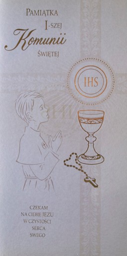 Kartka jest składana, delikatnie zdobiona metalicznymi foliami, wewnątrz umieszczone są życzenia,