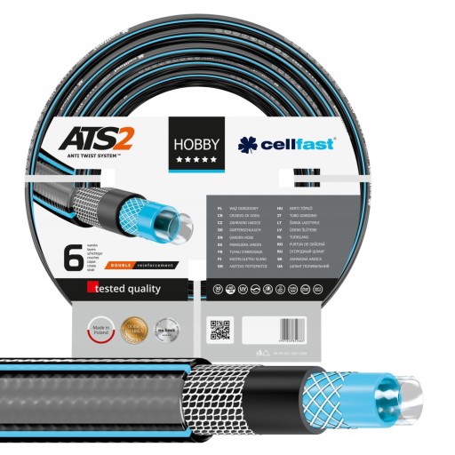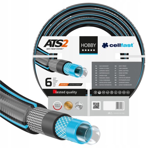 Wąż ogrodowy Hobby wyposażony został w technologię ATS2, która polega na prostym połączeniu oplotu trykotowego z oplotem krzyżowym. W efekcie wąż cechuje się odpornością na skręcanie i załamywanie się, a tym samym na powstawanie supłów blokujących przepływ wody.