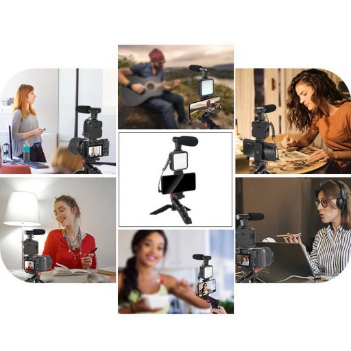 Набор для видеоблога, светодиодная лампа, микрофон, держатель, штатив, пульт дистанционного управления.